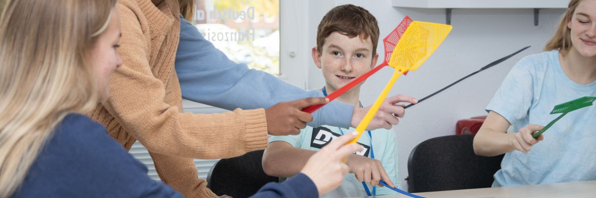 Grundsätzlich legen wir in unseren Kursen den Schwerpunkt sowohl auf das Verstehen als auch das freie Sprechen anstelle von purer Grammatik und reinem Lernen von Vokabeln. Da die Kinder die Grundgrammatik in unserem Unterricht ganz intuitiv erlernen, können sie sich im späteren schulischen Unterricht auf das komplexe Lernen besser einstellen.